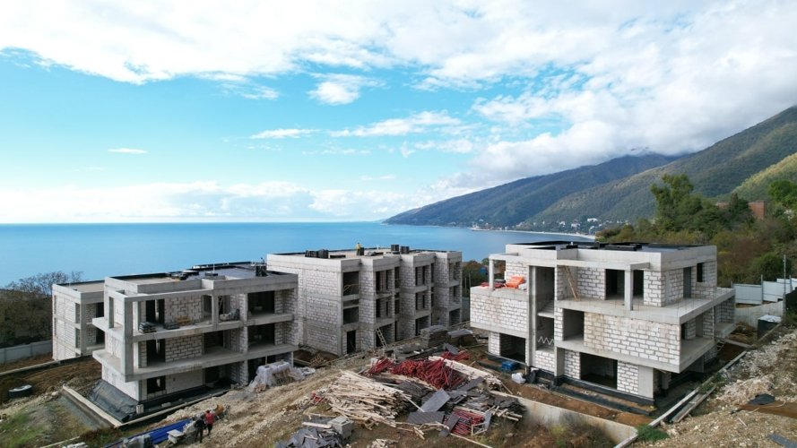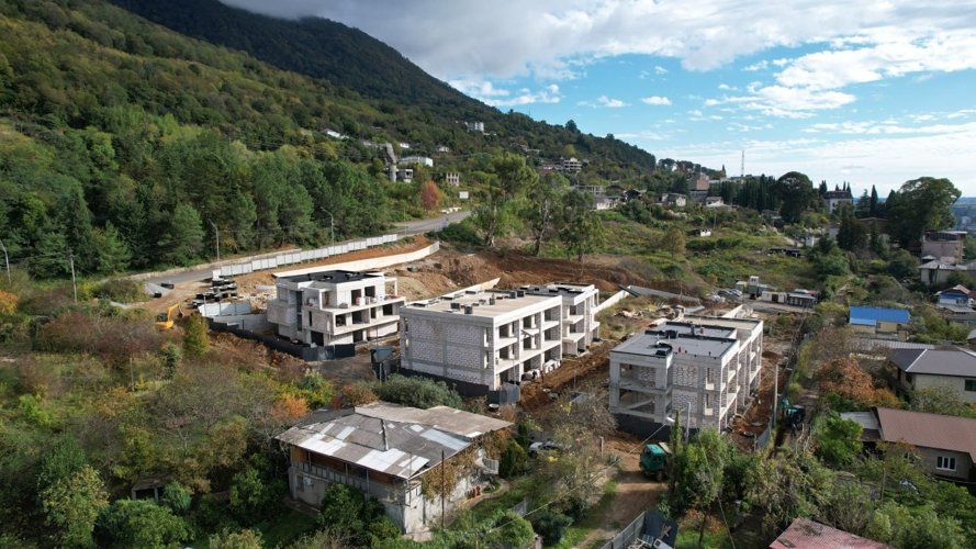 Комплекс расположен в Старой Гагре, всего в 10 минутах пешком от пляжа и центра города. По пути — зелёные улицы, гранатовые деревья, частный сектор и горный воздух. Всё, что нужно для жизни или отдыха, — рядом: кафе, рынок, магазины. Если вы хотите купить квартиру в Гаграх, это лучшее место, где сочетаются природа и инфраструктура.